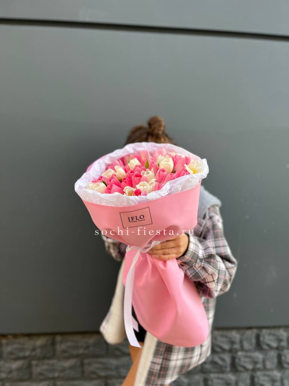 тюльпаны белые и розовые микс в нежном оформлении.