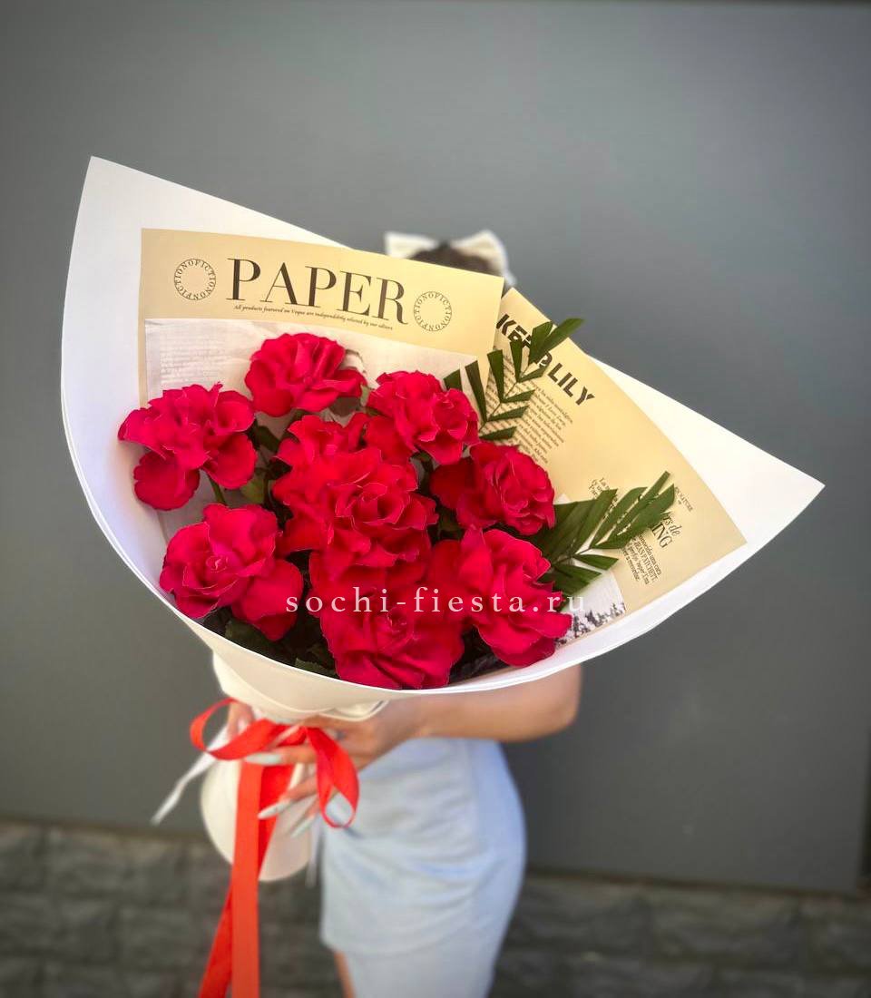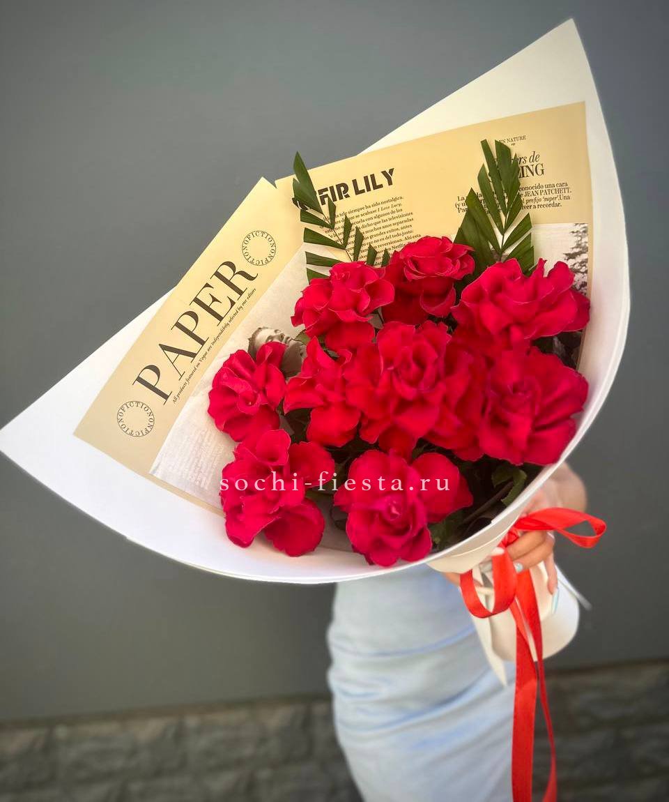 Этот пышный авторский букет в красно-розовых тонах представляет собой гармоничное сочетание страсти и нежности.