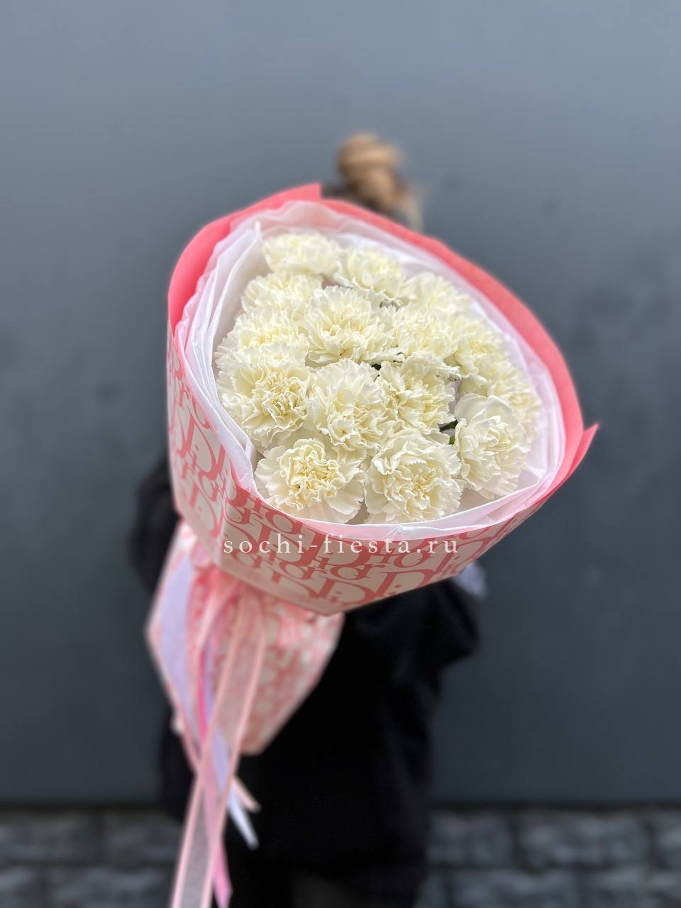 Пышные шапки диантусов выстраиваются в плотную охапку с выраженным объёмом. Множество мелких соцветий формирует воздушную текстуру и создаёт ощущение живого облака.