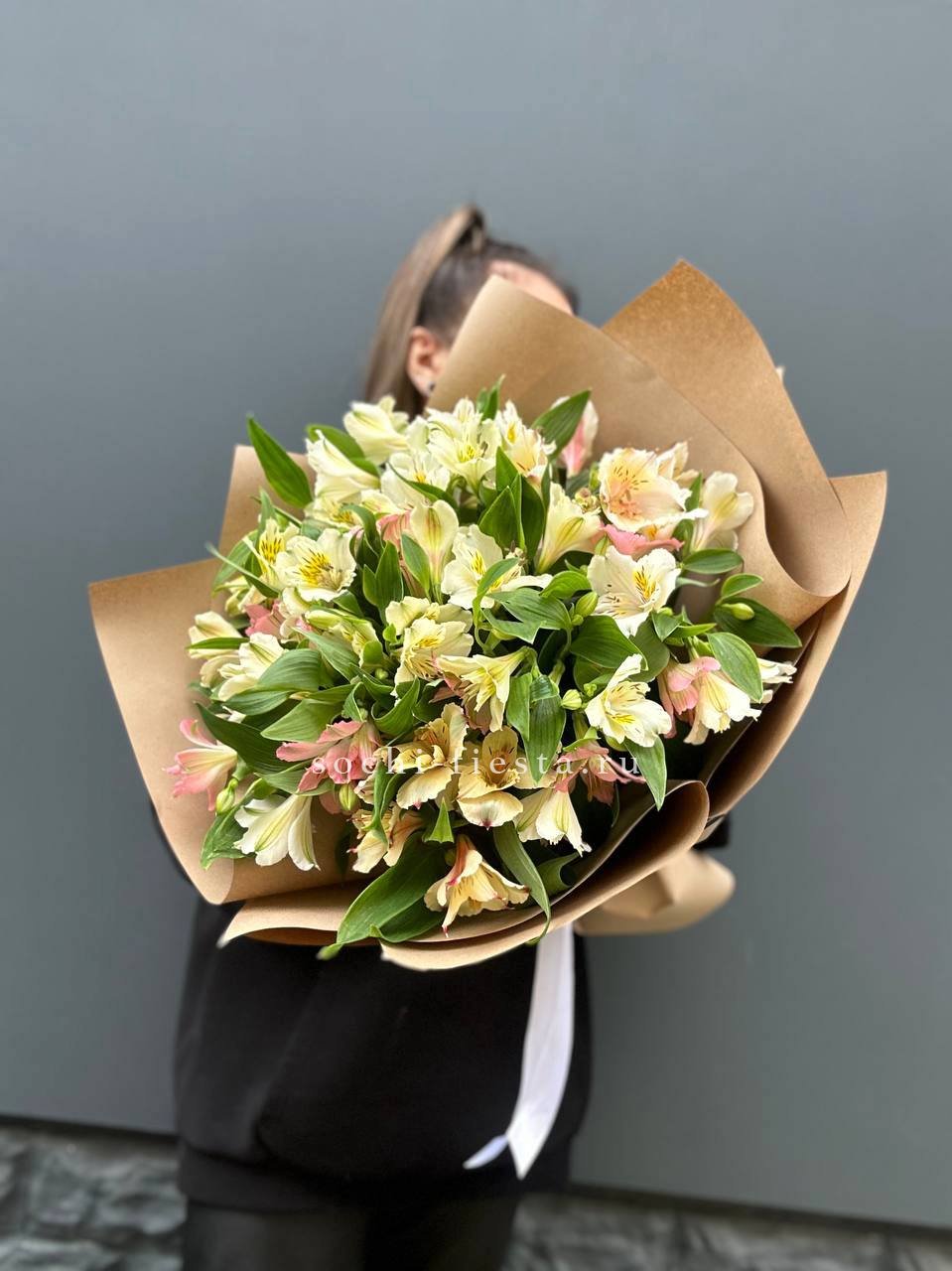 17-20 веток альстромерии, лента, крафт.