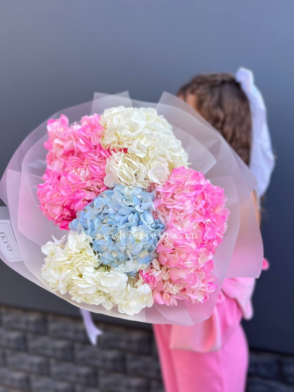 гортензия - 11 шт., лента, дизайнерская упаковка.