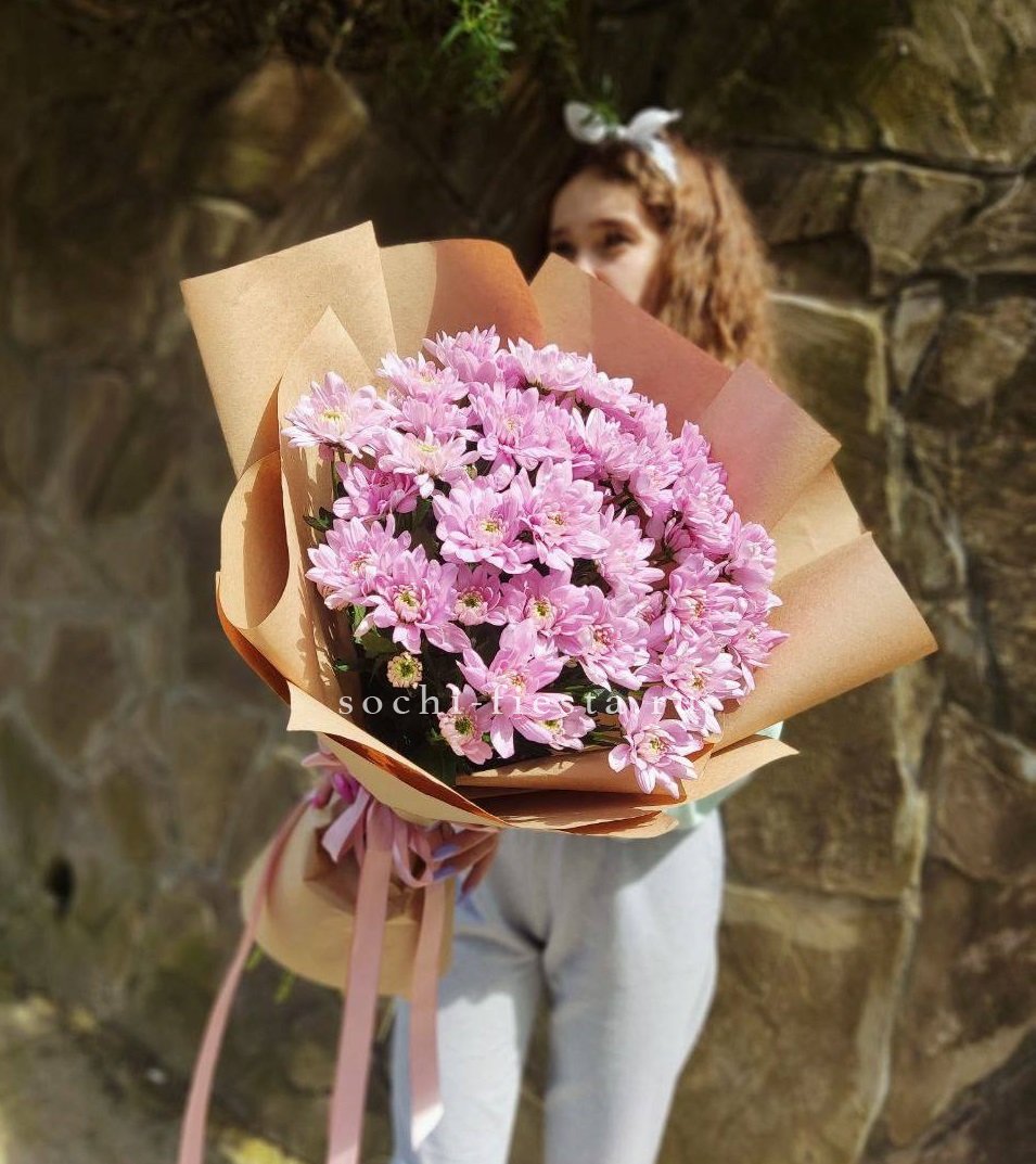 хризантема кустовая - 9 шт., лагурус, пленка,  лента.