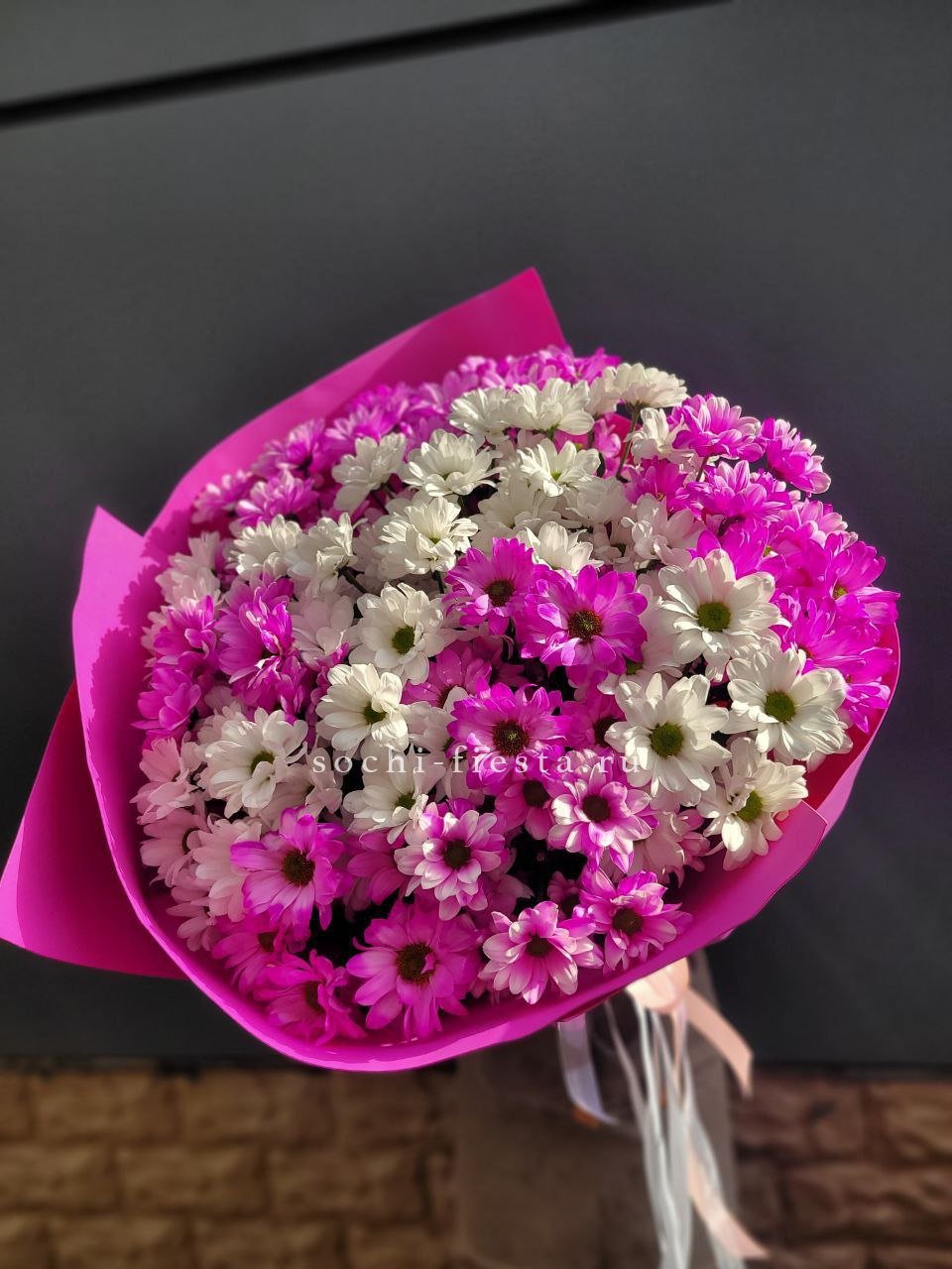 15-17 веток кустовых хризантем, фоамиран, дизайнерская пленка.