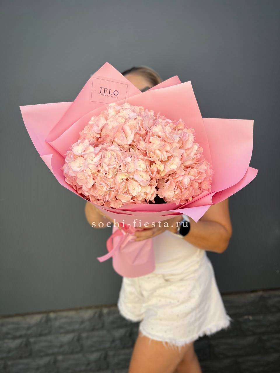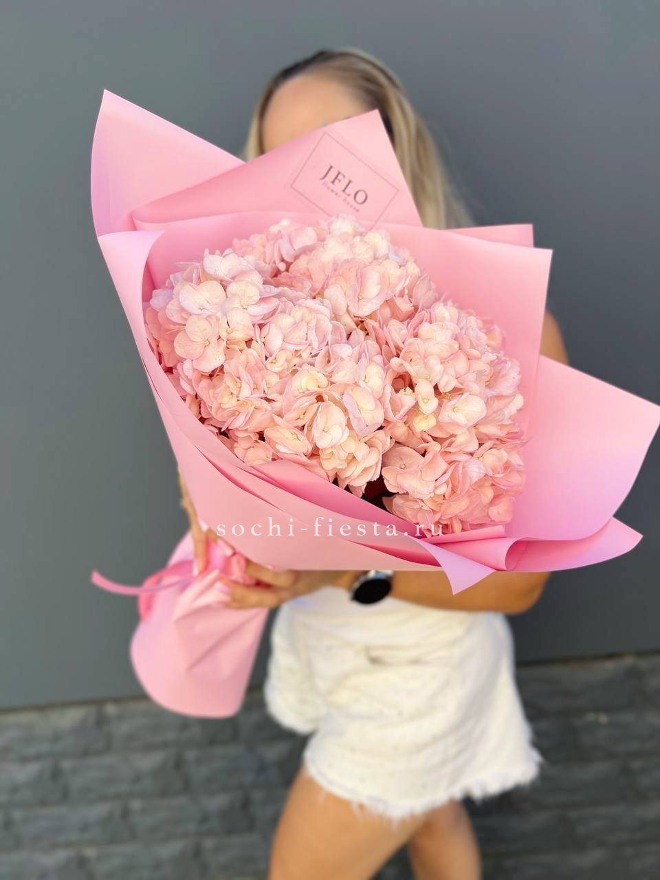 Valencia объединяет пышные соцветия гортензии с многослойными розами и воздушной эустомой. Крупные листья монстеры создают графичный каркас, а озотамнус добавляет текстурной глубины. Композиция для пространств, где ценится авторский взгляд на флористику.