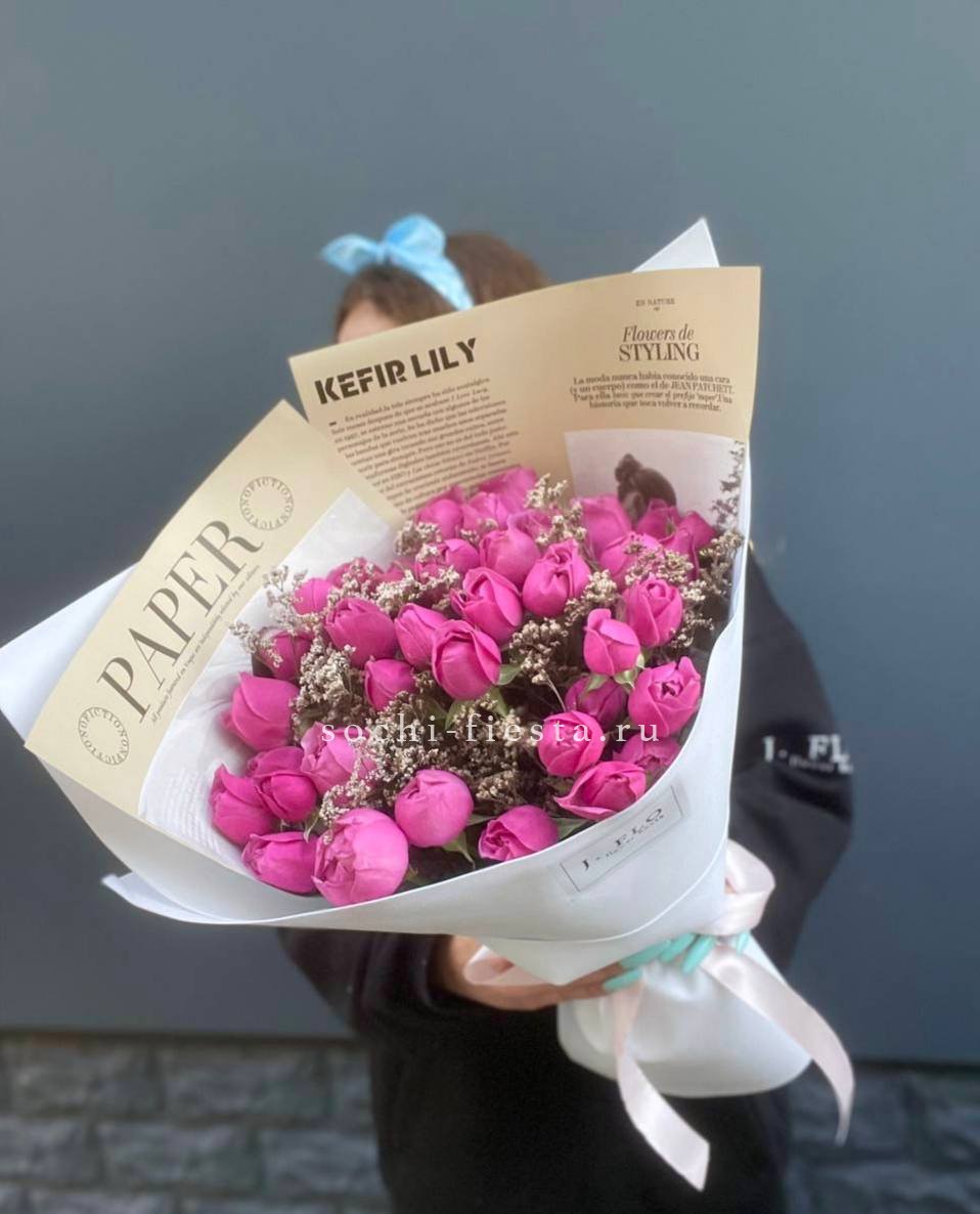 Мы работаем только со свежими цветами — букеты радуют от 7 до 14 дней и дольше при правильном уходе.