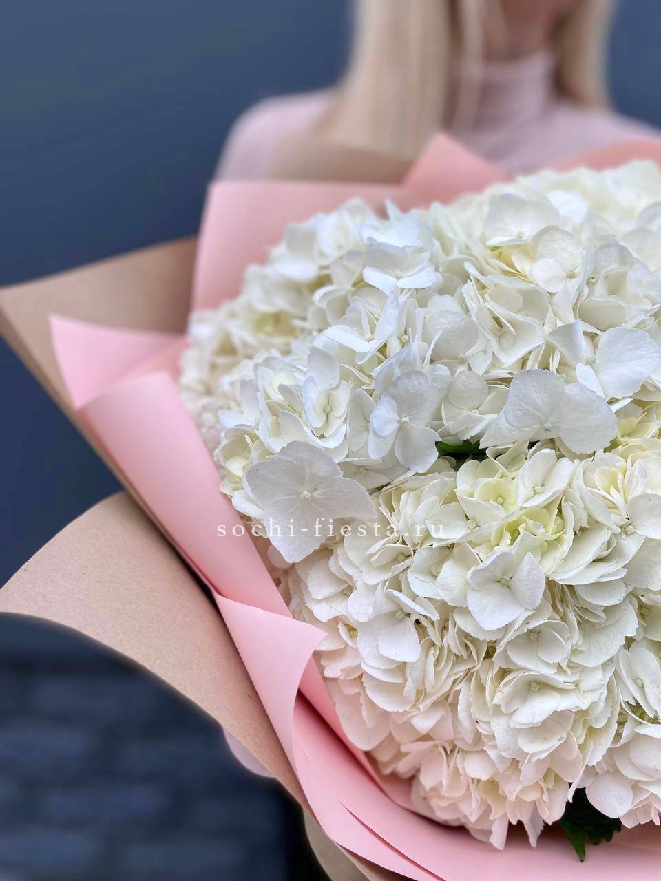 Семь белоснежных соцветий собраны в плотный объёмный силуэт. Гортензии Flakes создают ощущение летней свежести и спокойной гармонии. Монобукет для тех, кто ценит чистоту формы и природную красоту.