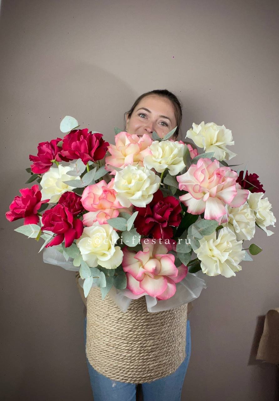 Для заказа товара "35 французских роз микс в джутовом боксе" с доставкой в Армавире нажмите в корзину
