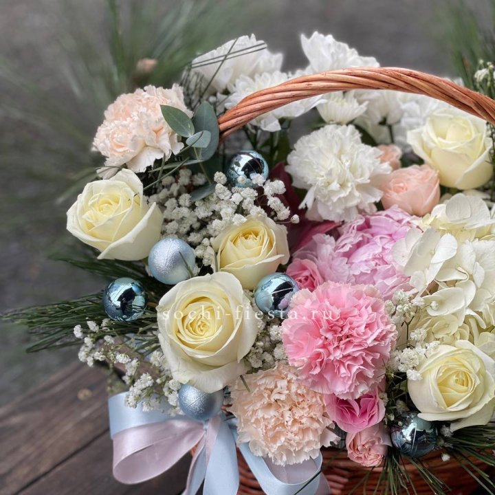 Каждый сезон приносит в Армавире свой ассортимент корзин. Весной флорист создаёт корзины с тюльпанами и нарциссами — лёгкие, нежные, полные ощущения обновления. В мае-июне приходят пионы — Sarah Bernhardt, Bowl of Cream, Red Charm — главный флористический праздник. Осенью — хризантема в тёплых гаммах с декоративными ягодами и ветвями. Зимой — хвойные аранжировки с амариллисом для праздничной атмосферы.