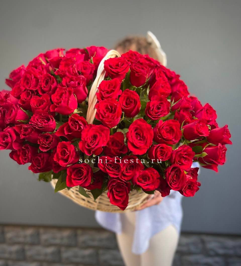 151 белая роза в корзине