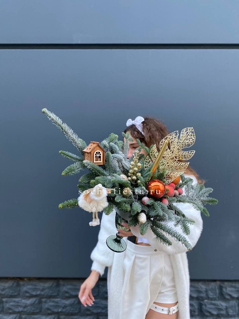 нобилис, бокал, оазис, свечи, новогодние игрушки, декор ВНИМАНИЕ! Готовая композиция (декор) может иметь незначительные внешние отличия от примера на фотографии.