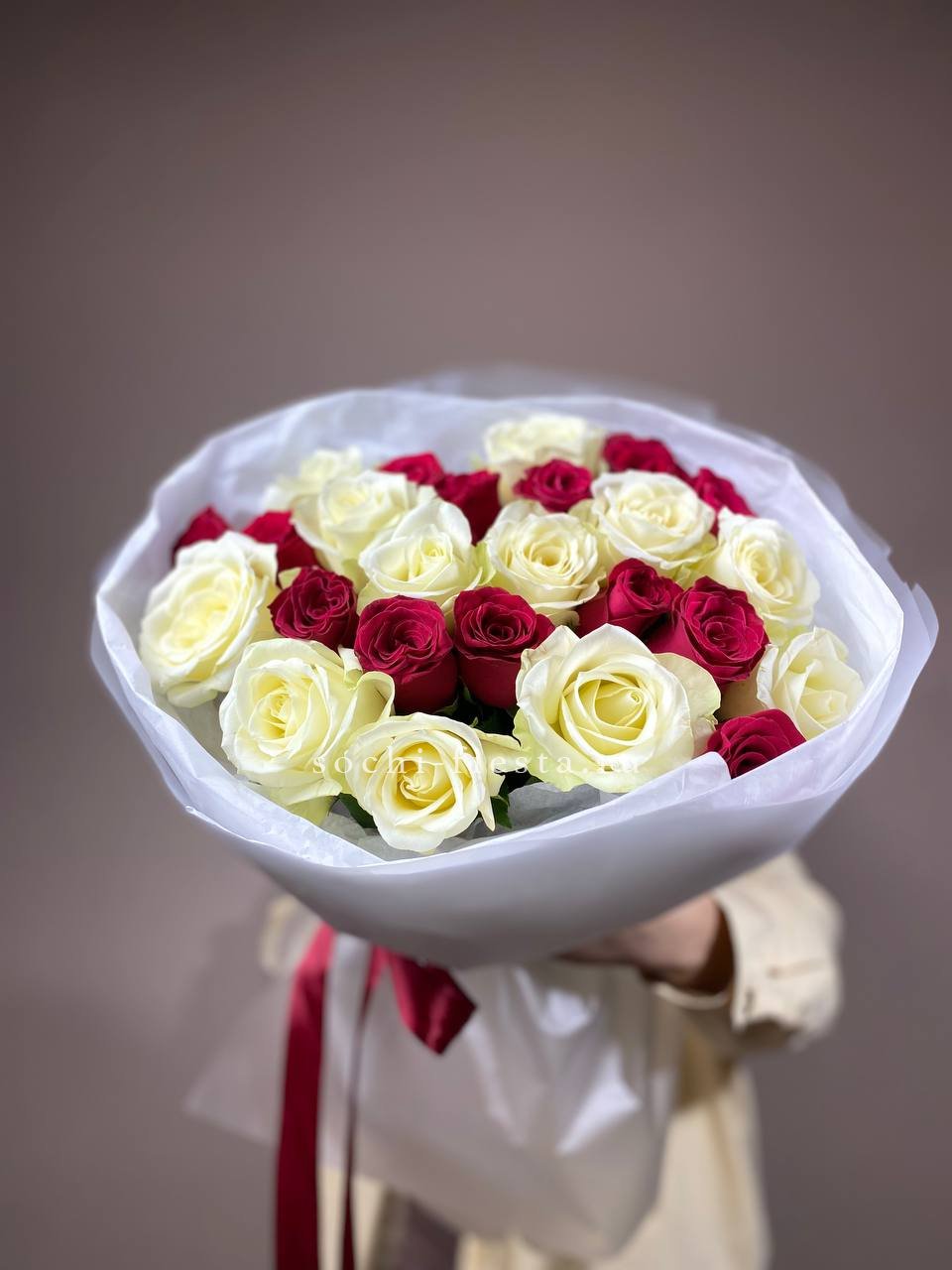 Для заказа товара "Букет их красных и белых 25 роз" с доставкой в Армавире нажмите в корзину