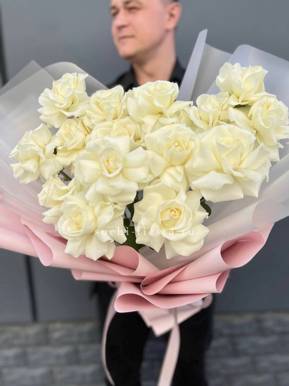 Букет из 15 французских роз Вайт дрим