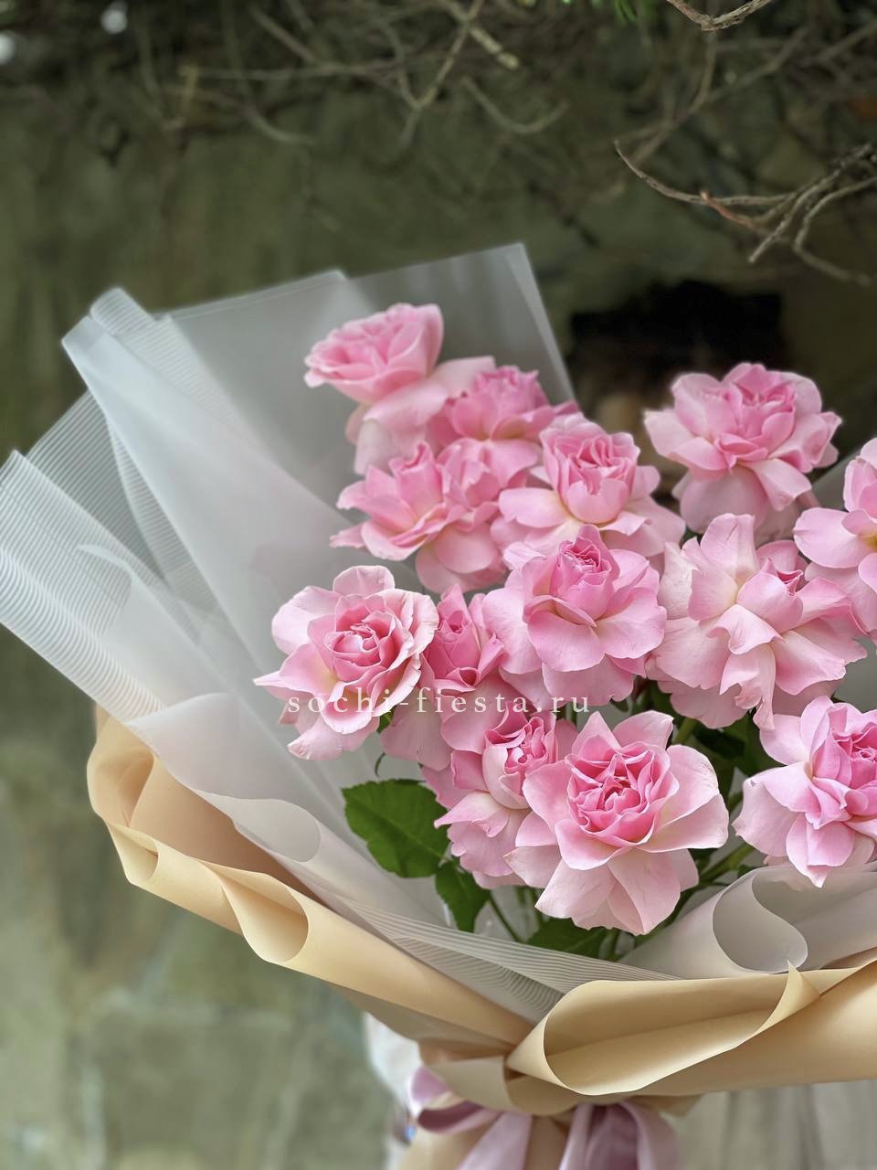 Мы работаем только со свежими цветами — букеты радуют от 7 до 14 дней и дольше при правильном уходе.