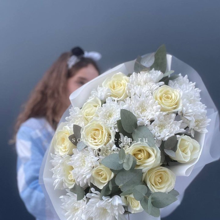 Зима и лето в Армавире — розы и хризантемы как основа. Эти виды стабильны в поставках круглый год. Флорист дополняет их сезонными акцентами: хвойные ветви зимой, открытая эустома летом. Сборный букет в любое время года выглядит живым и актуальным.