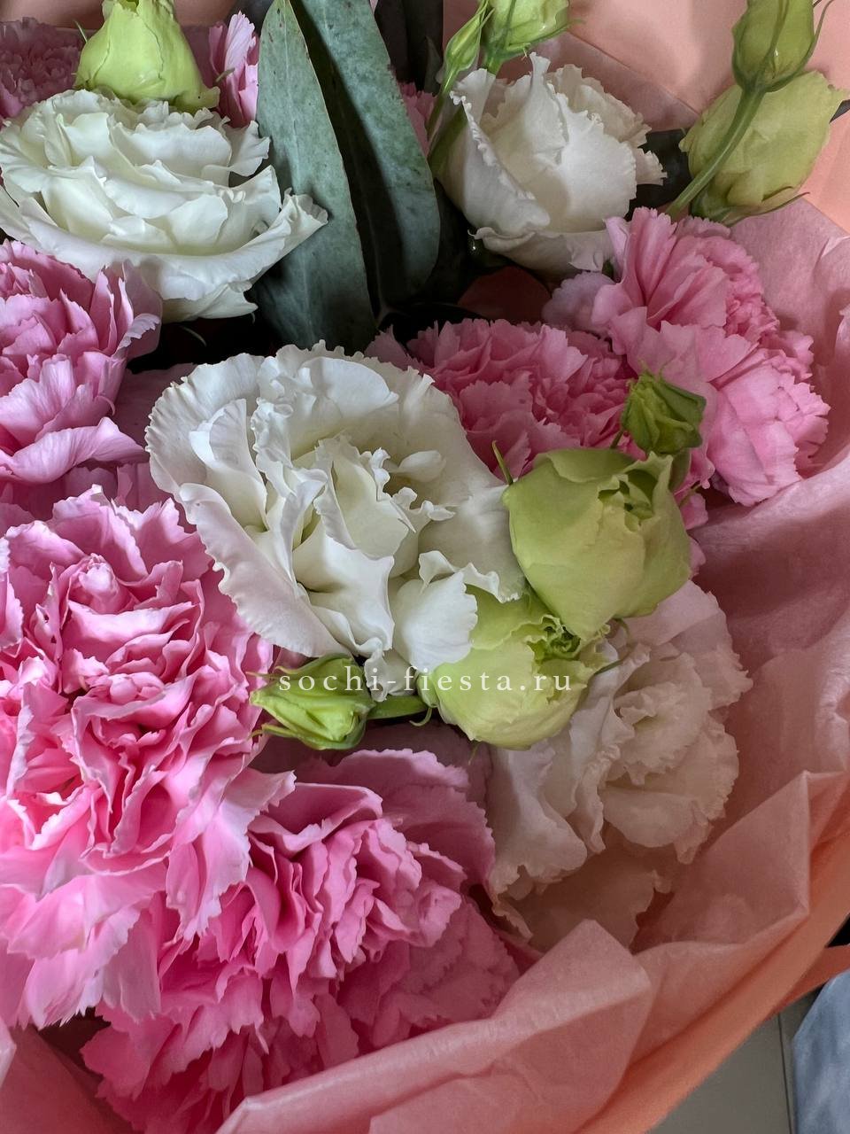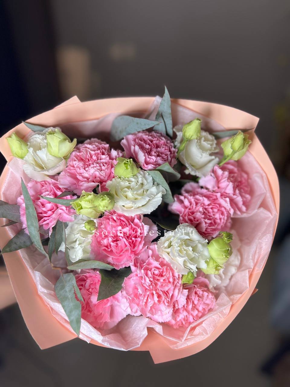 Для заказа товара "Букет гвоздик и эустом "Сири"" с доставкой в Армавире нажмите в корзину