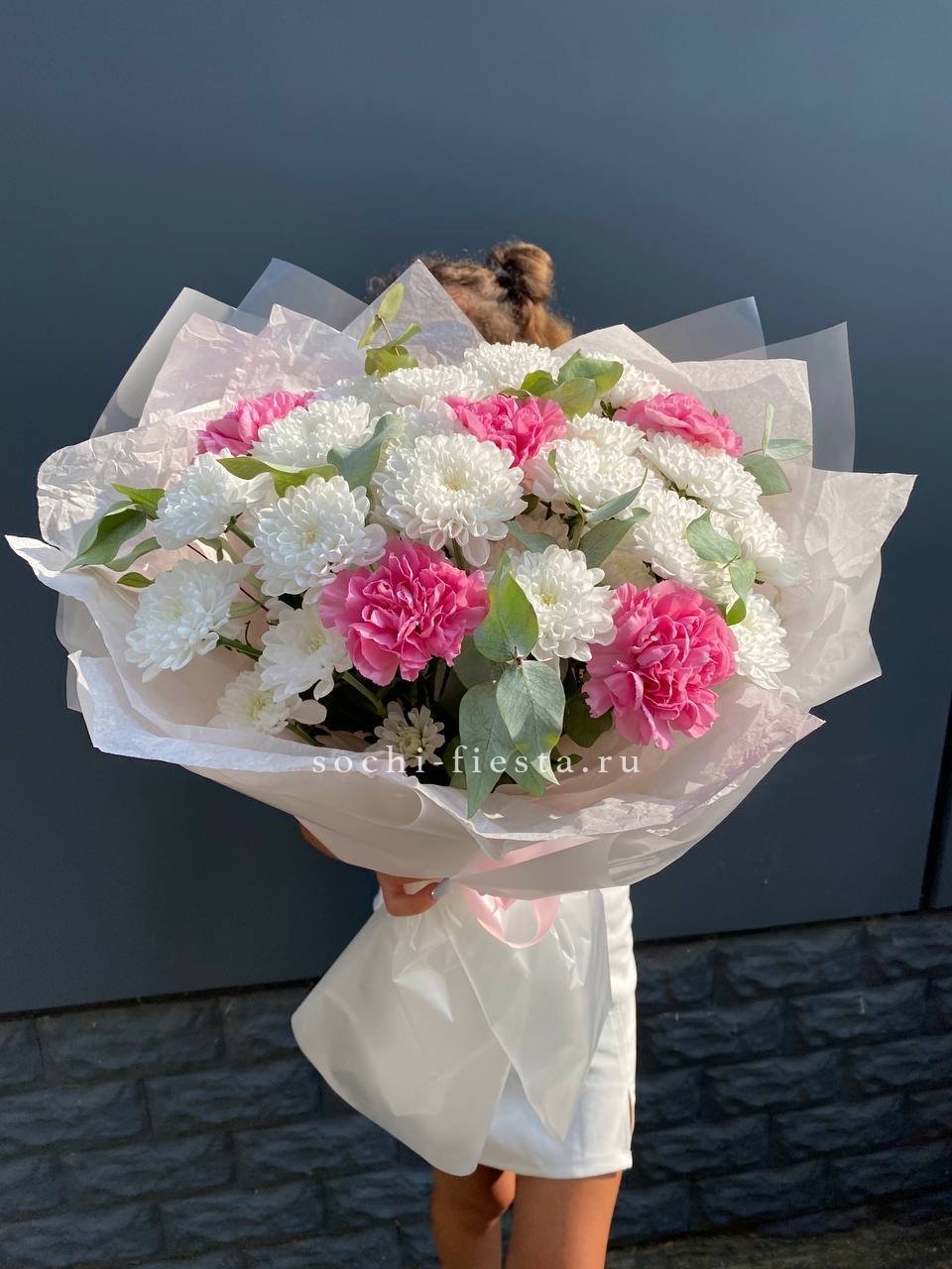 Для заказа товара " Букет хризантем и диантусов "Воздушный"" с доставкой в Армавире нажмите в корзину