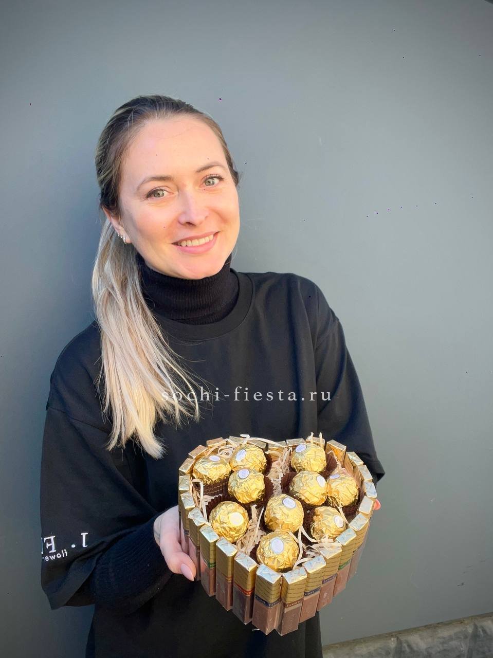 шоколад Merci- 25шт., конфеты Ferrero- 10шт., коробка сердце.