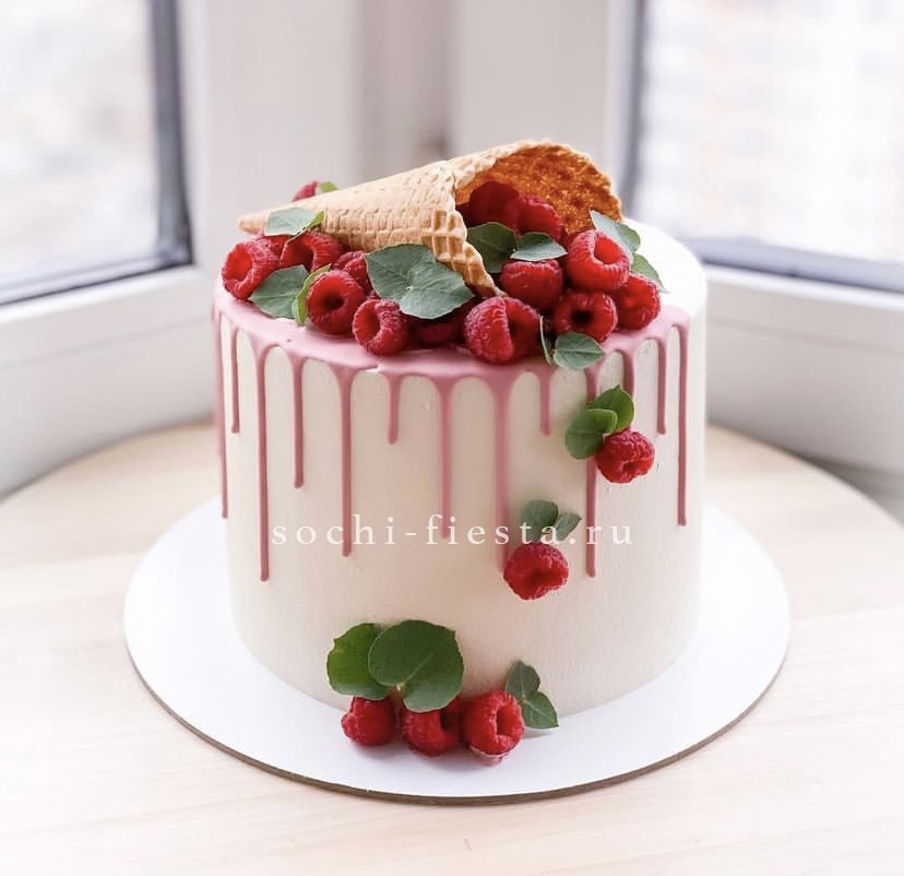 Свежие ягоды покрывают поверхность торта плотным слоем ярких оттенков. Полтора килограмма десерта с выбором из трех начинок: от карамельного сникерса до легкого клубничного пломбира. Готов произвести впечатление с первого взгляда.